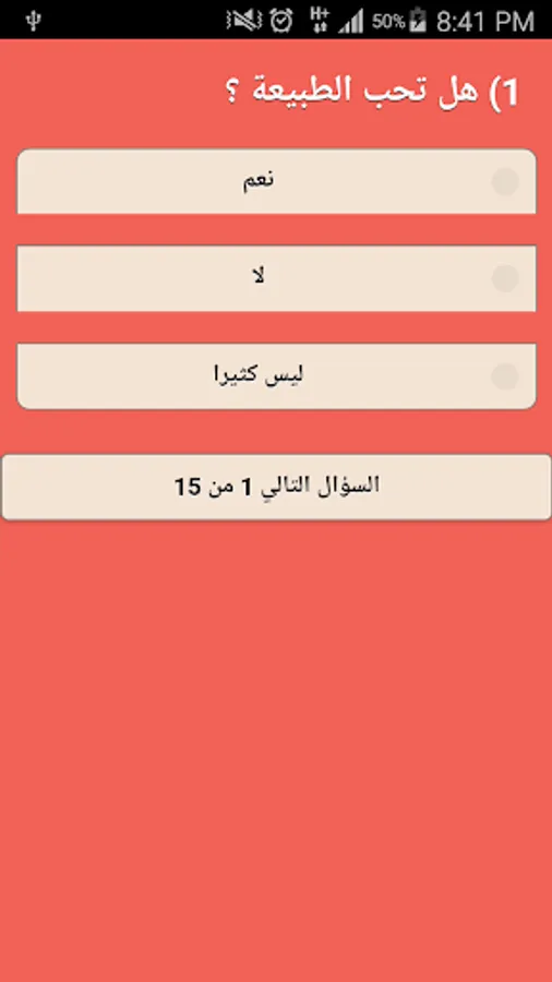 يتكون هذا لاختبار من 15 سؤال متعدد الاجابات.