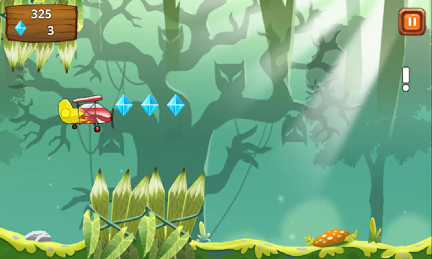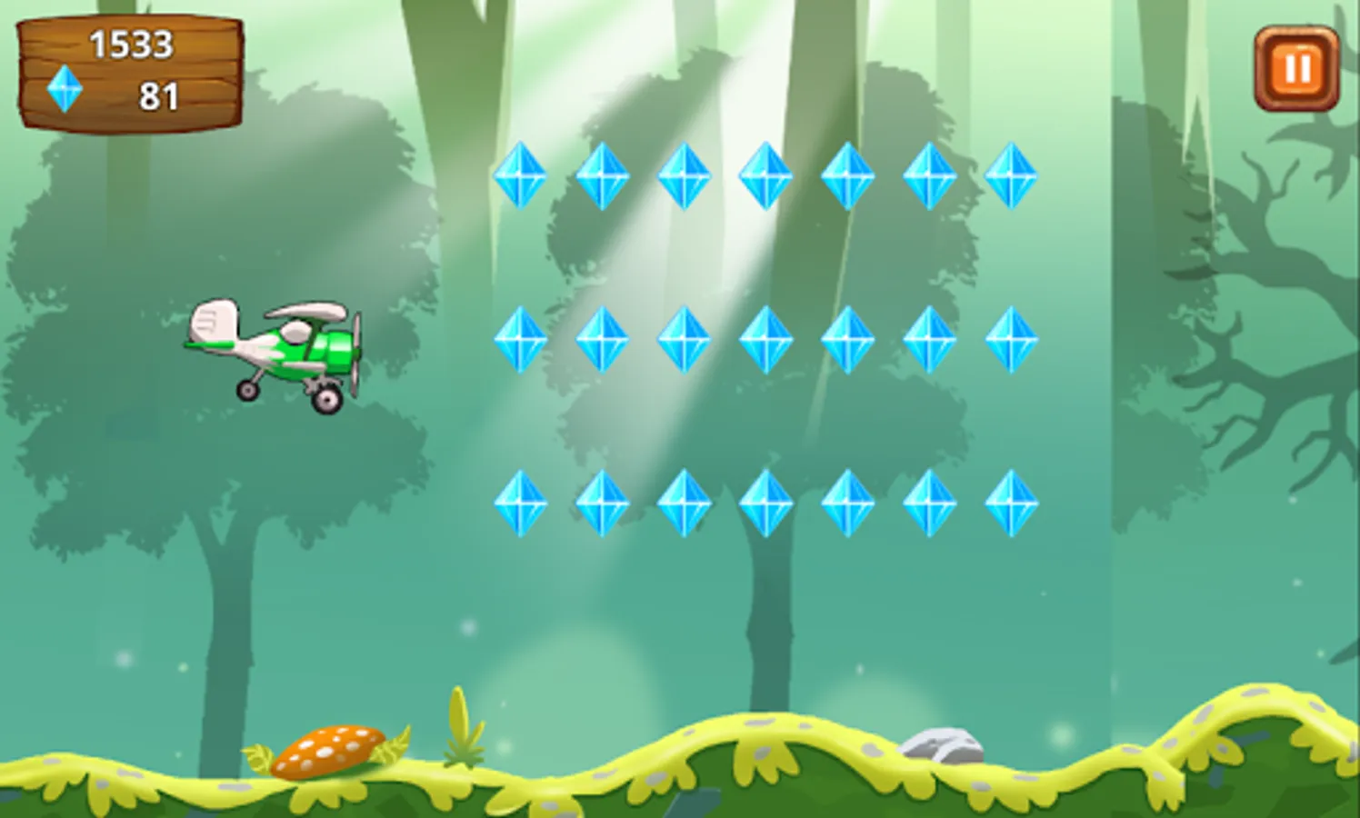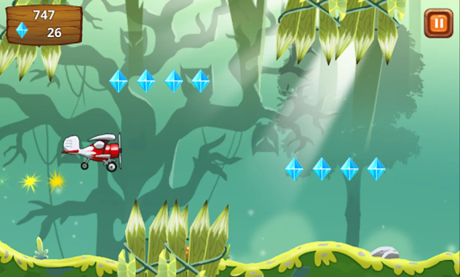 Fly your plane through the jungle, tap your screen to control your movement, avoid crashing and collect more coins and stars as fast as you can.