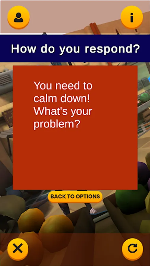 The Player will be dealing with an irate customer and will be provided with two options of responses to choose from. One response is correct and the other is incorrect but the player will only learn at the end of the level if their responses demonstrate good customer service and will only move to the next level if the customer for that level is satisfied.
