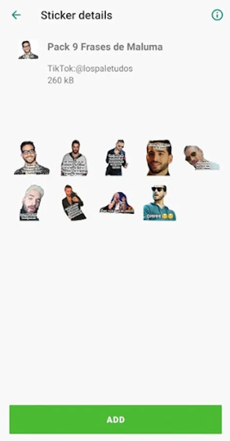 The application has Maluma Stickers (Stickers), some without phrases and others with phrases. The Stickers can be downloaded to be able to use them. The application will be continuously updated so that you have new Stickers.