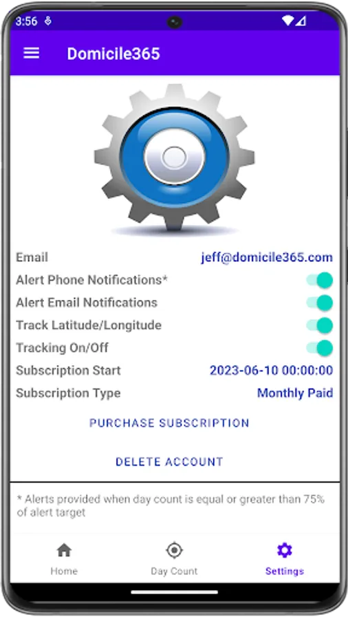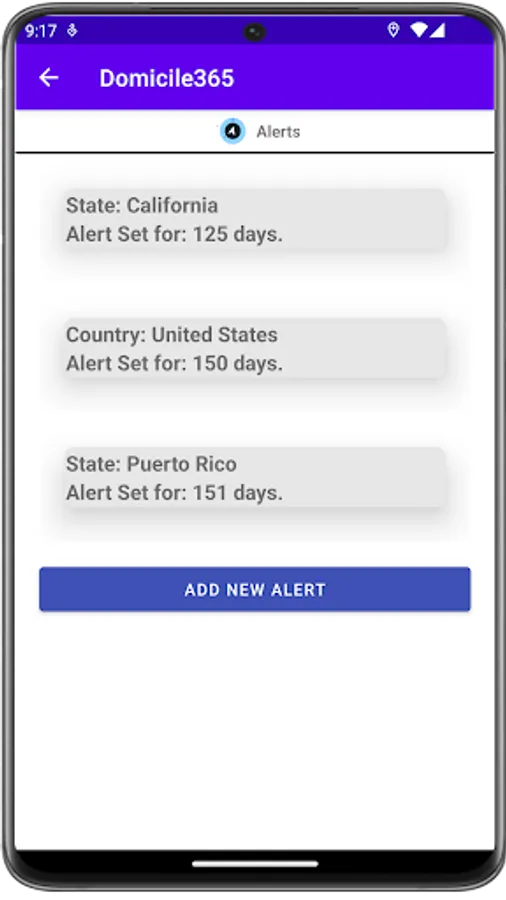 Set an unlimited number of day count alerts by Country, State, City, Possession or Province. Use alerts to monitor jurisdictional limits (with 183 day count annual limits popular with many jurisdictions). Receive day count alerts by email and local notification on your phone as your reach various day thresholds. Check your alerts at any time.