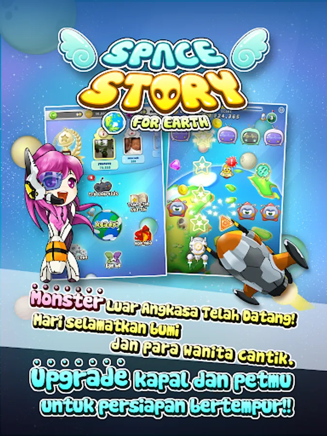 Space Monster telah muncul! Ayo kita pertahankan bumi! Upgrade spaceship dan pet kamu untuk persiapan battle. Space Story adalah permainan seru dan mendebarkan yang bisa dinikmati semua orang,
