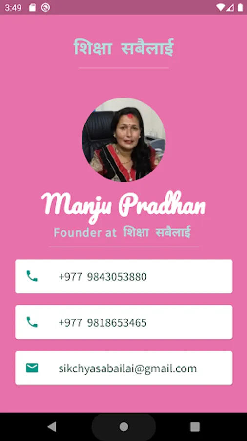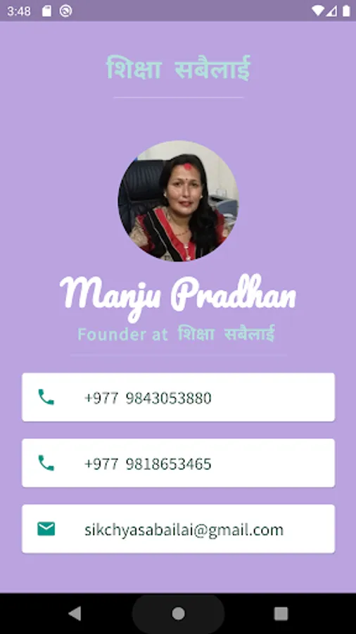 This app contains the contact information of Manju Pradhan so, If you want to contact with Manju Pradhan then they can simply download this app.