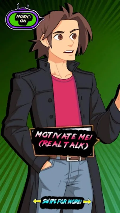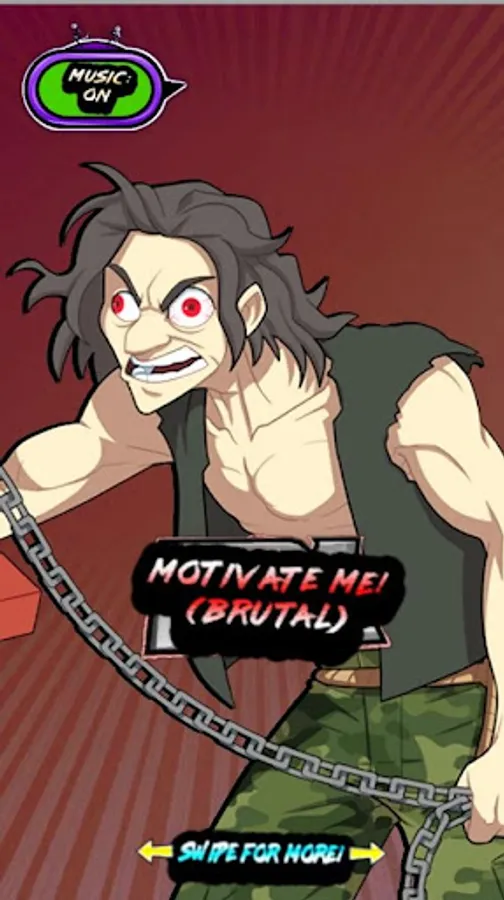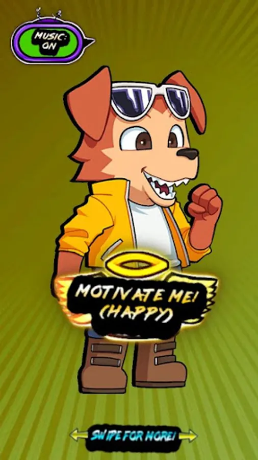 Four characters, each with their own unique voices, music and type of motivation will be just the thing you need for a pick me up! It's as simple as swiping between characters and pressing the button!