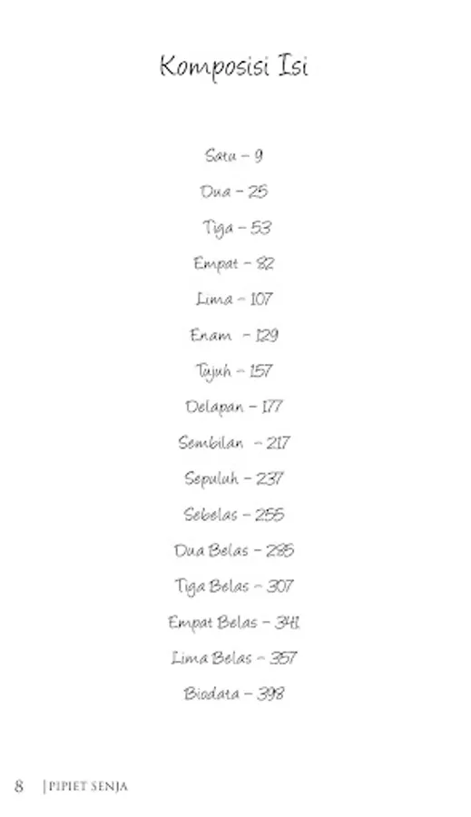 Pipiet Senja is the pen name of Etty Hadiwati Arief, born in Sumedang, May 16 1957 from the couple Hj.Siti Hadijah and SM. Arief (late) was a fighter'45. He has written hundreds of novels, but which have been published as new books 80.