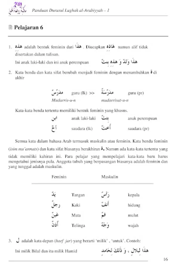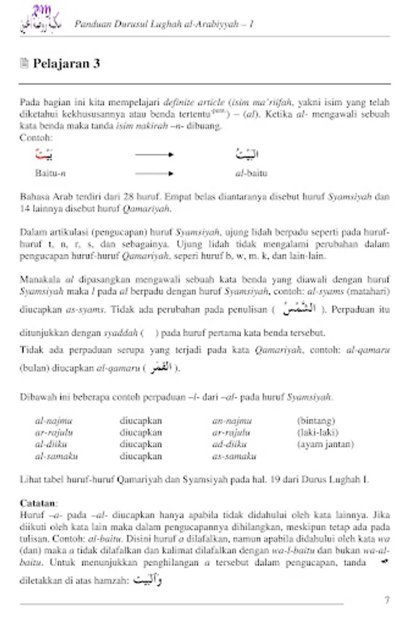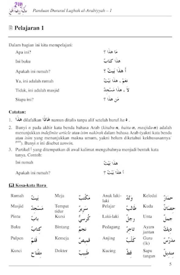 This guidebook is accompanying material from the book Durus al-Lughat-al-Arabiyyah Li Ghairi Natiqina Biha Volume 1, which contains explanations of the rules of Arabic used in the readings and exercises in each lesson chapter. This Durus Lughah book and guide can be used to learn Arabic on your own, although of course studying with a teacher is much better.