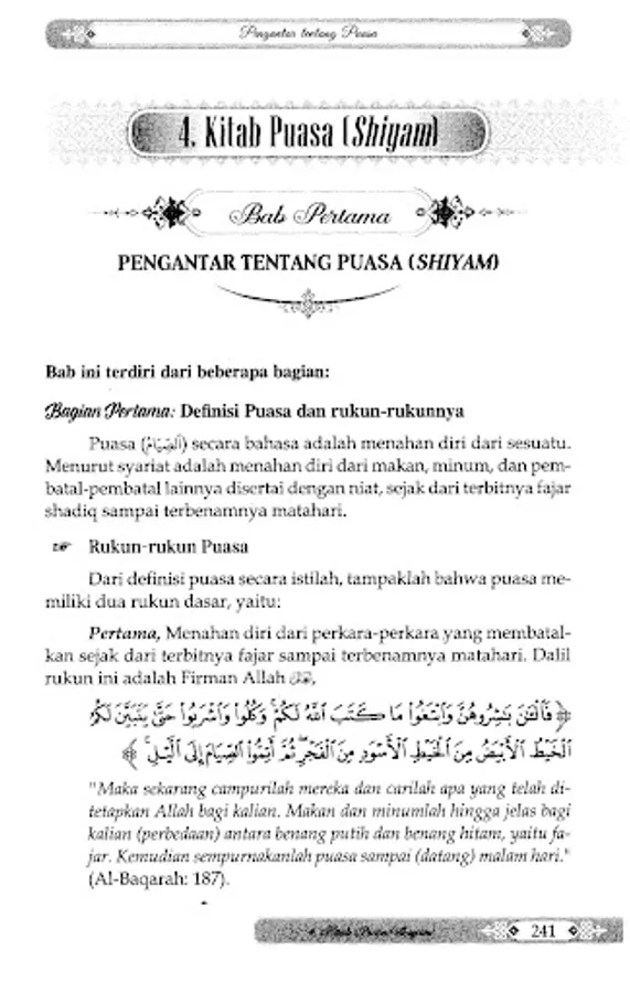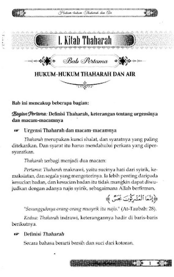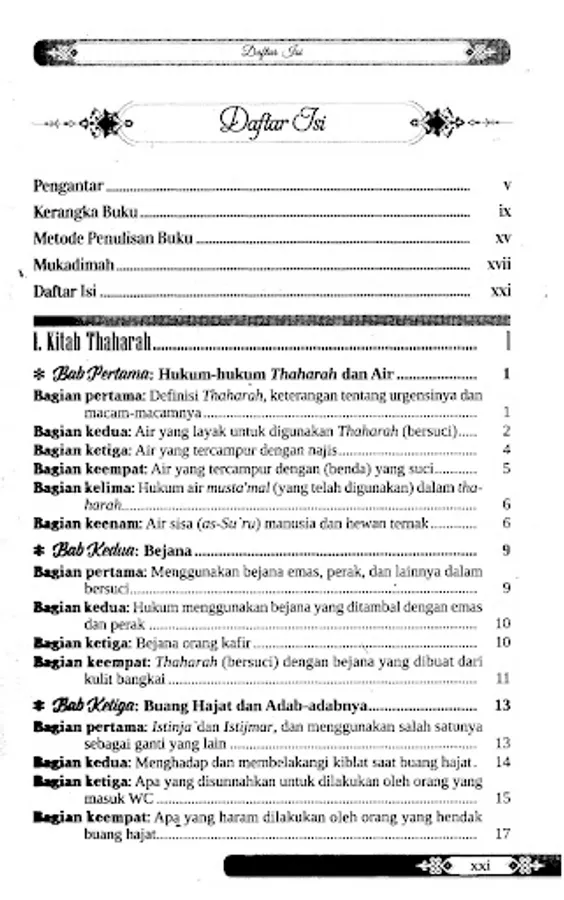 Among the fiqh chapters which are described briefly and systematically in the book Fiqh Muyassar Practical Guide to Fiqh and Islamic Law include the Introduction to the science of Jurisprudence contained in the preamble, the Book of Thaharah (purification), the Book of Prayer, the Book of Zakat, the Book of Fasting, the Book of Hajj, the Book of Jihad , Book of Muamalat, Book of Inheritance, Book of Marriage and Divorce, Book of Jinayat, Book of Had (Shari'a criminal law), Book of Oaths and Votives, Book of Food, Slaughter, Hunted Animals, and Book of Justice and Testimony.