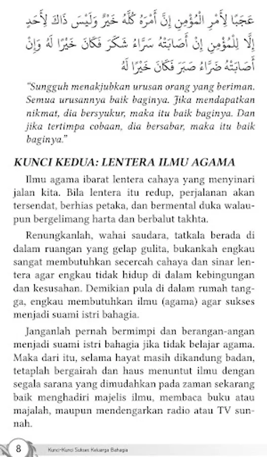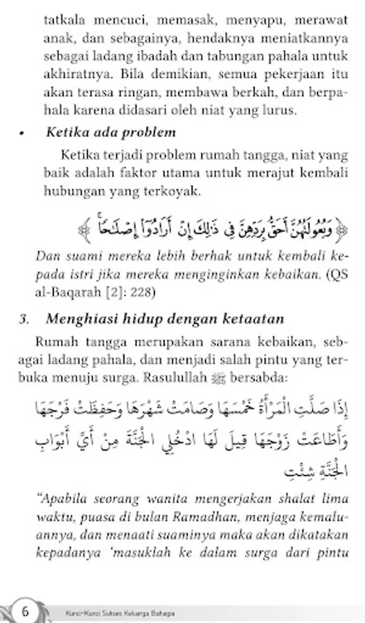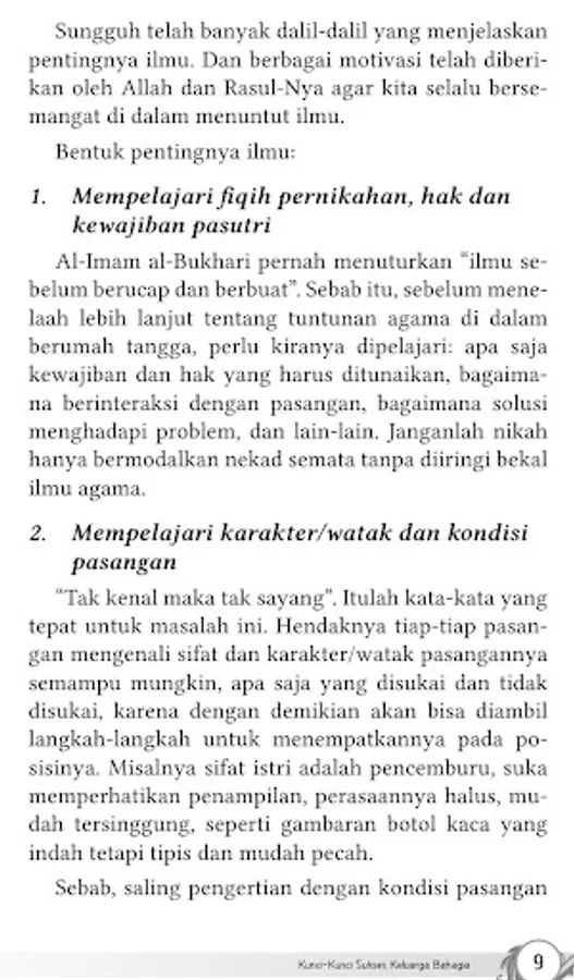 However, the happiness of a happy household is certainly not achieved/obtained only by mere fantasies and dreams. It takes extra effort and struggle. Therefore, Islam—as the perfect religion—has paid great attention to laying down beautiful foundations, concepts and guidelines for husband and wife. If both of them practice these principles and build their household mahligai with these signs then—guaranteed—their household will get happiness and not easily shaken and collapse (read: divorced) when facing various problems/difficulties in life.