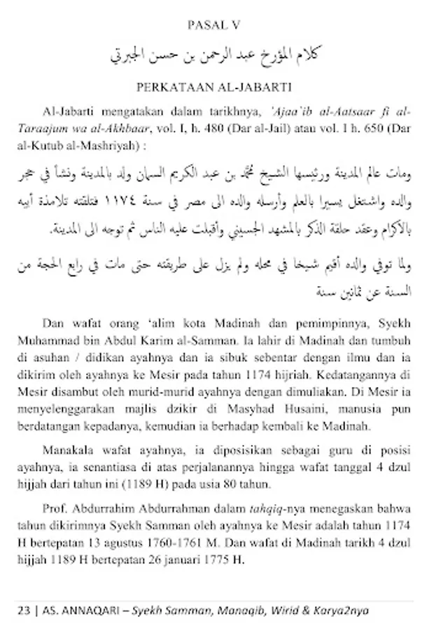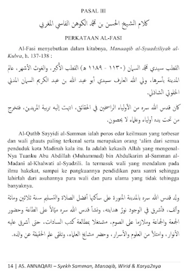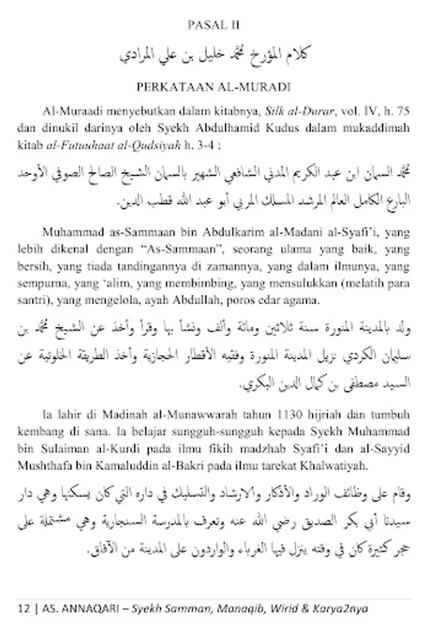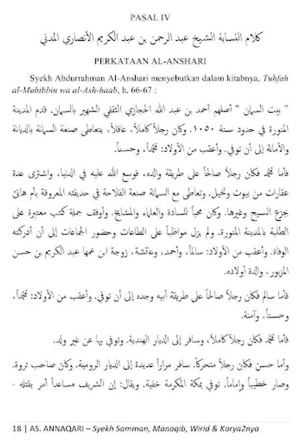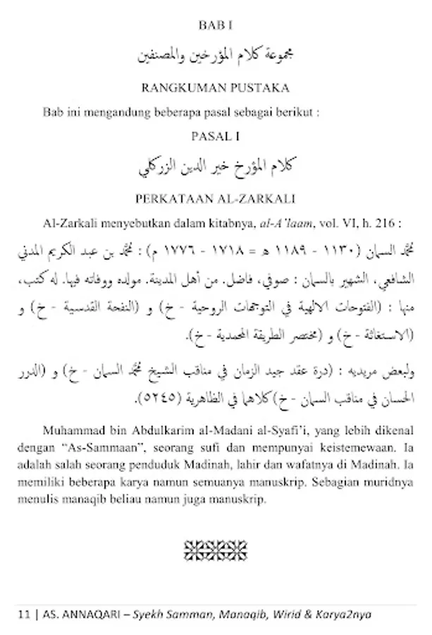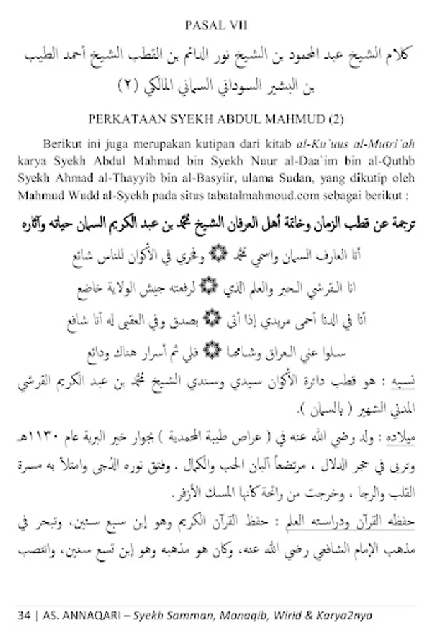 This is a collection of manaqib (biography), wirid and works of Quthb Daa`irah al-Imkaan ash-Sheikh Muhammad bin Abdul Karim bin Hasan bin Ahmad bin Muhammad bin Ahmad As-Samman bin Abdullah al-Madani, founder of Thoriqah Sammaniyah, a wali who is famous in his time until now, whose influence is widespread from Medina al-Munawwarah to Sudan, North Yemen, Egypt, Nigeria, to Atheya and Southeast Asia including Thailand and Indonesia, especially on the islands of Borneo and Sulawesi, may Allah ta'ala bless him .