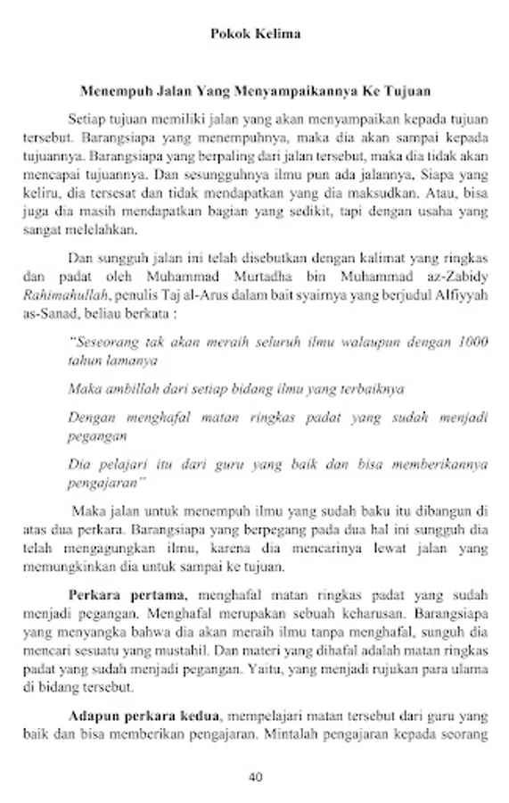 This book is almost the same as books on adab seeking previous knowledge, such as Hilyah Talibil Ilmi Bakr Abu Zaid, Ta'lim A-Muta'allim Az-Zarnuji, Tadzkirotus Sami Ibnu Jamaah, Kitabul Ilmi Ibnu Utsaimin and others. It's just that this book is very short and made to be memorized, because this book is a summary of another author's book, namely Ta'dzimul Ilmi.