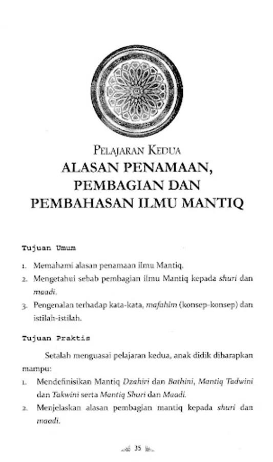 - Presenting mantiq points in the form of a tree branch system, so that it will naturally produce the presentation of the basics of the doctrines and the development of the teaching of this book.