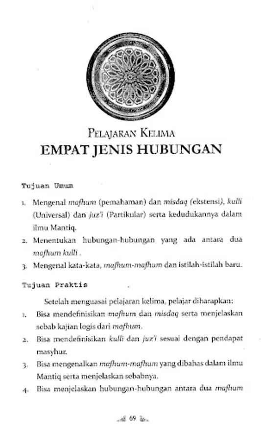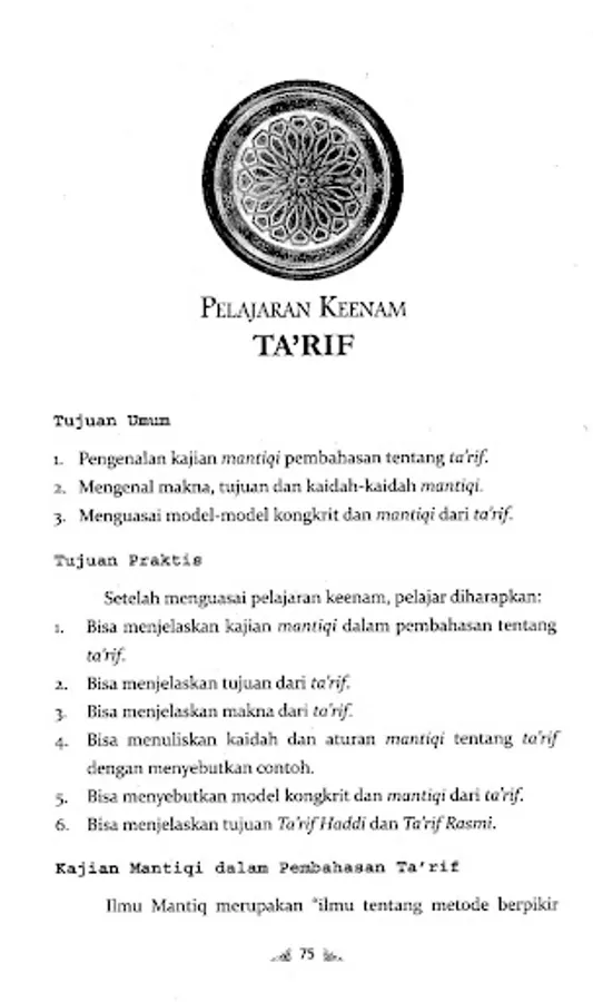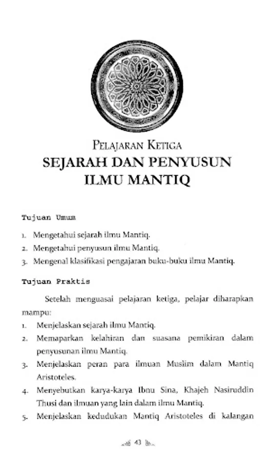 This book is basically a new method of studying Mantiq knowledge. The meaning of "method" here is to present a systematic collection of logical doctrines; where the entire discussion of one section is an introduction to the understanding of the next section.