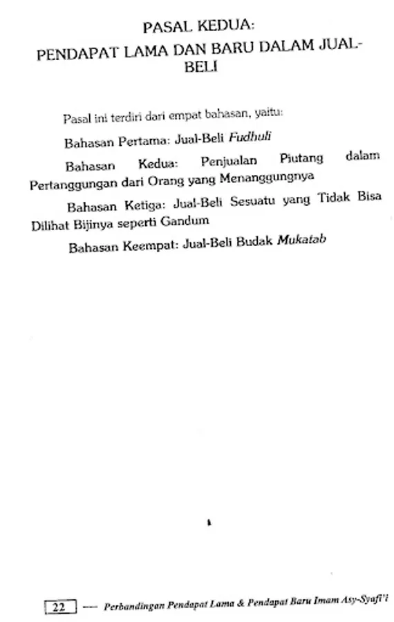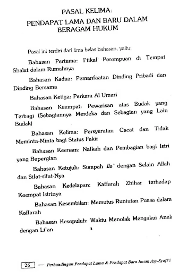 In this thesis proposal of Comparison of Old Opinions and New Opinions of Imam Ash-Shafi'i, the author compiles the opinions of Imam Ash-Shafi'i, both new and old through the book Minhaj Ath-Thalibin, and conducts a comparative study of the schools of thought. famous jurisprudence in the corridors of syar'i arguments, so that clarity can be obtained and distinguish between strong and weak opinions.