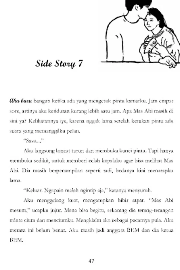 And it turns out that this is the beginning of Abi's arbitrary attitude. In a matter of months Sasa's life became a mess. Abhimanyu forced him out of BEM, forbade him to work outside the home, and had to accept being his partner. Also complete with a little touch and friction of the lips, but Sasa doesn't want to have intercourse. But what happens when jealousy makes Sasa just give himself up to Abhimanyu? Will Abhimanyu gladly accept or refuse in order to look after Sasa?