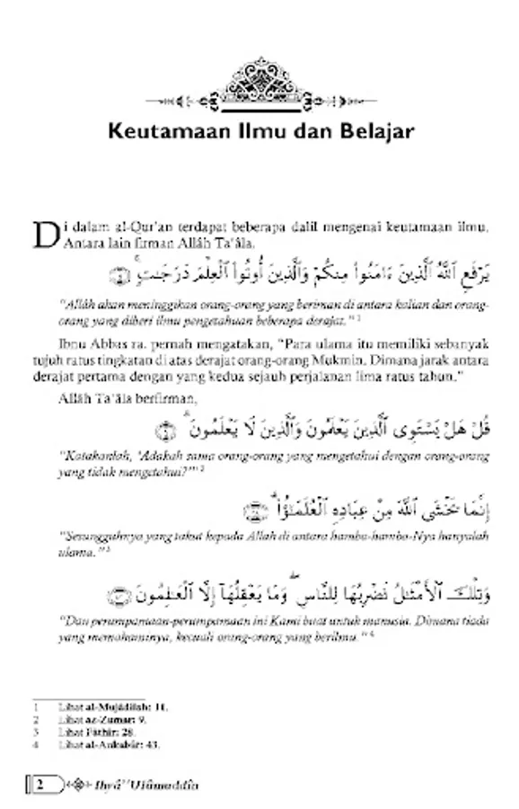 Ihya Ulumuddin was born from the anxiety of a great scholar (Hujjatul Islam) al-Imam Abu Hamid al-Ghazali, how come, religious knowledge (ulumuddin) at that time was nothing more than "old clothes" that had been left by many people, most of them were crazy about the beauty of positive science, philosophy and kalam which were imported from outside Islam by the rulers of that time, so that gradually, without realizing it, the people's sensitivity to Islamic knowledge began to fade, their self-confidence dropped dramatically, their self-esteem was sold, and paid handsomely with prestige high on these imported sciences (Hellenism) and considered studying religious knowledge brought by the Prophet as something "embarrassing", useless and even considered to hinder the progress of human civilization, because it was too far from the reality of human life actually.