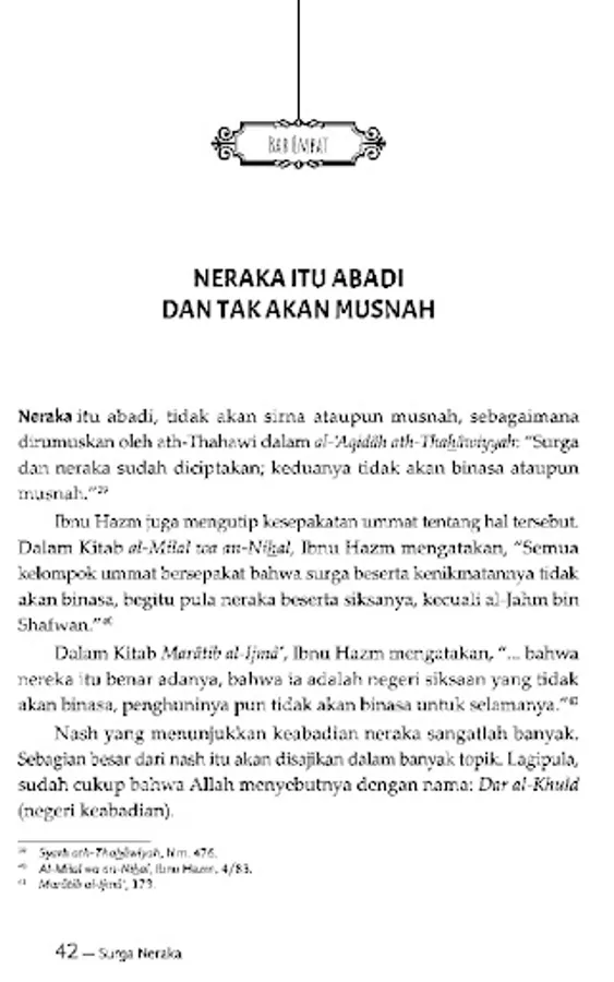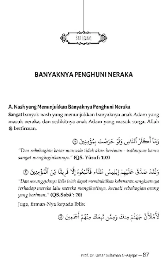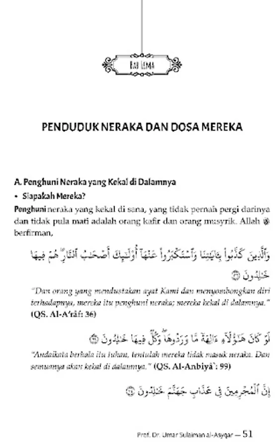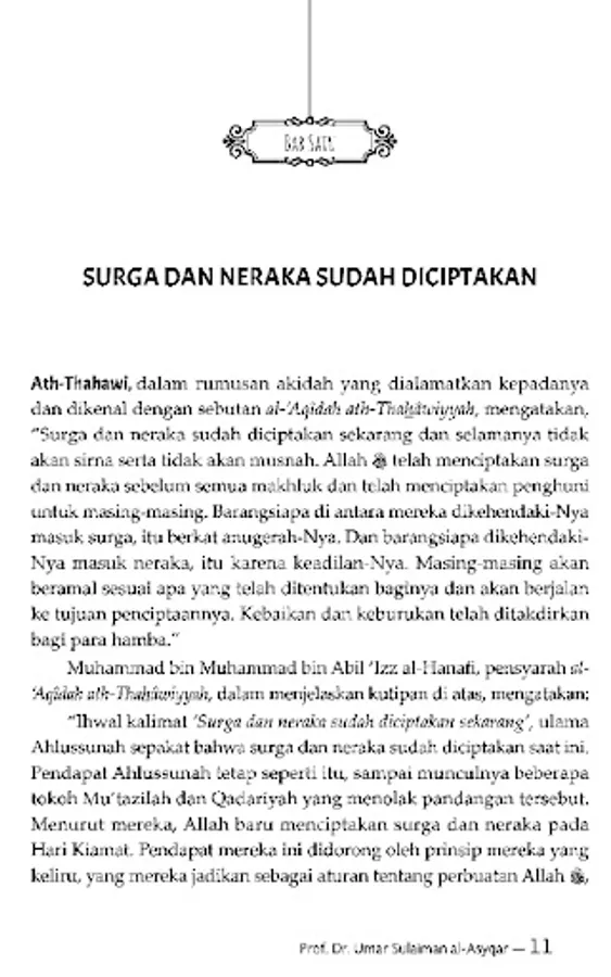 This book is the work of Prof. Dr. Umar Sulaiman al-Asyqar who specifically discussed heaven and hell. Presenting the arguments of the Ahlusunnah wal Jama'ah belief that heaven and hell have been created now and refute the opinions of groups who reject this belief.
