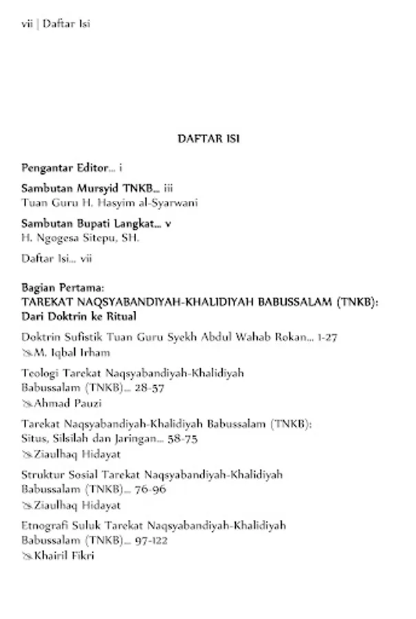Apart from that, it is also important to mention here the willingness of Tuan Guru Hasyim al-Syarwani (Mursyid TNKB) who has given permission for the publication of this book, and of course again to H. Ngogesa Sitepu, SH (Regent of Langkat), who has not only supported the publication of the book. , but has also helped finance the publication of this book. In addition, it should be noted H. Ahmad Mahfuz (Chairman of the Langkat MUI), who has provided a lot of input and moral support.