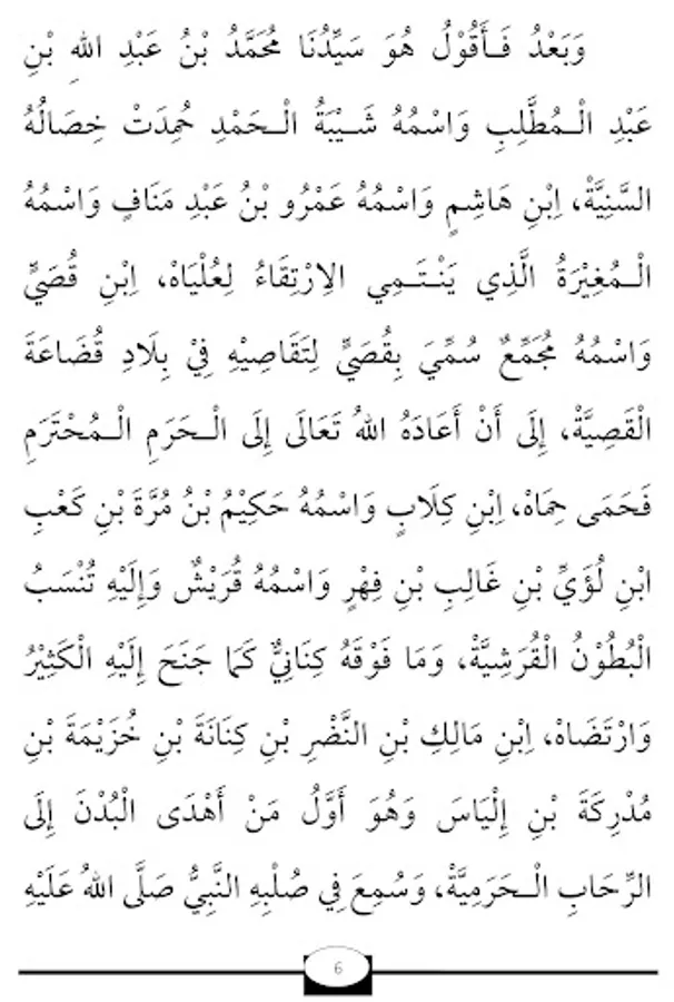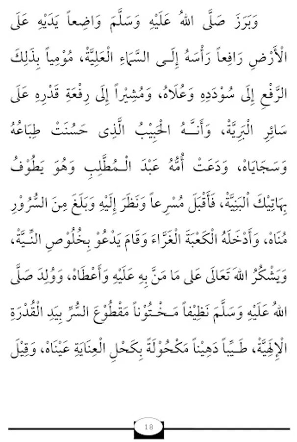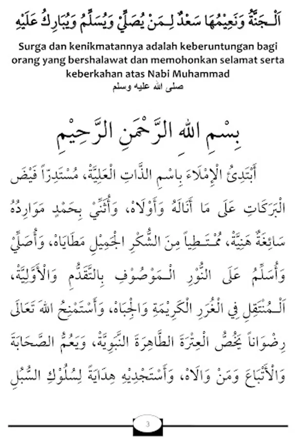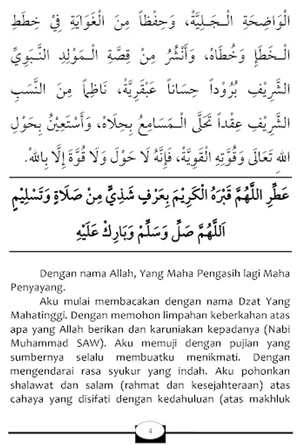 I ask for sholawat and greetings (grace and prosperity) for the light which is characterized by precedence (on other creatures) and beginning (on all creatures). Who move around in noble people.
