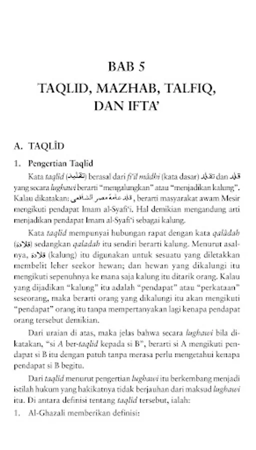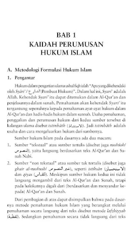Particularly at the level of Islamic Higher Education (IAIN and PTAIS), according to the latest curriculum stipulated by the Director General of Islamic Religious Institutional Development, Ministry of Religion, in 1995, ushul fiqh is given in all faculties and each department with a difference in the weight of credits- his. This means that every student at PTAIN or PTAIS must study ushul fiqh, although at different levels. For Tsanawiyah and Aliah levels, ushul fiqh lessons are given in a simple form. For needs at this level of education, it is relatively easy to find ushul fiqh textbooks written in Indonesian.