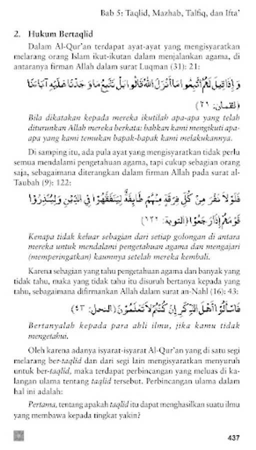 Ushul fiqh is the main subject in Islamic religious knowledge. Therefore, it is taught in every religious education institution or madrasa at the Tsanawiyah and Aliah levels.