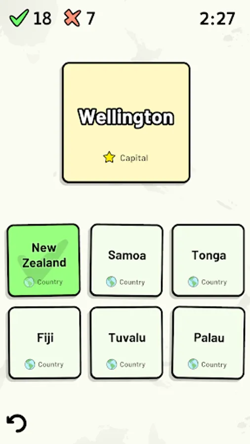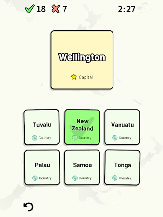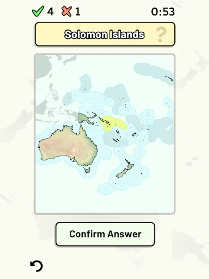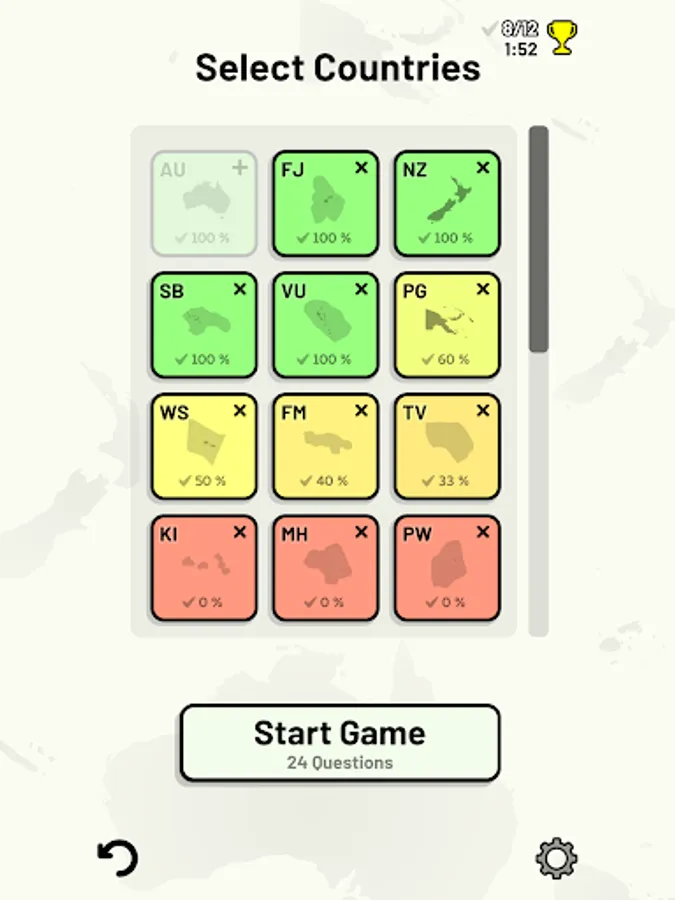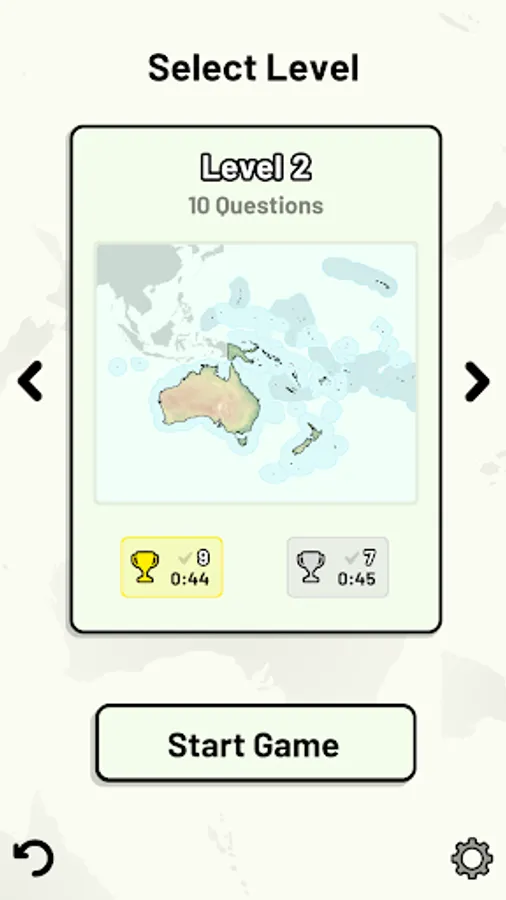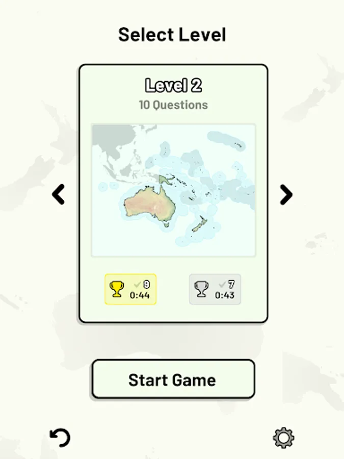 Standard quizzes allow you to learn each topic by progressing through a series of levels, each covering additional countries.