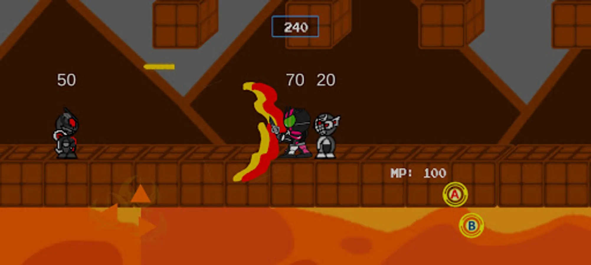 Other than normal attack, you can get the item to strengthen the character. Don't drop into the magma.