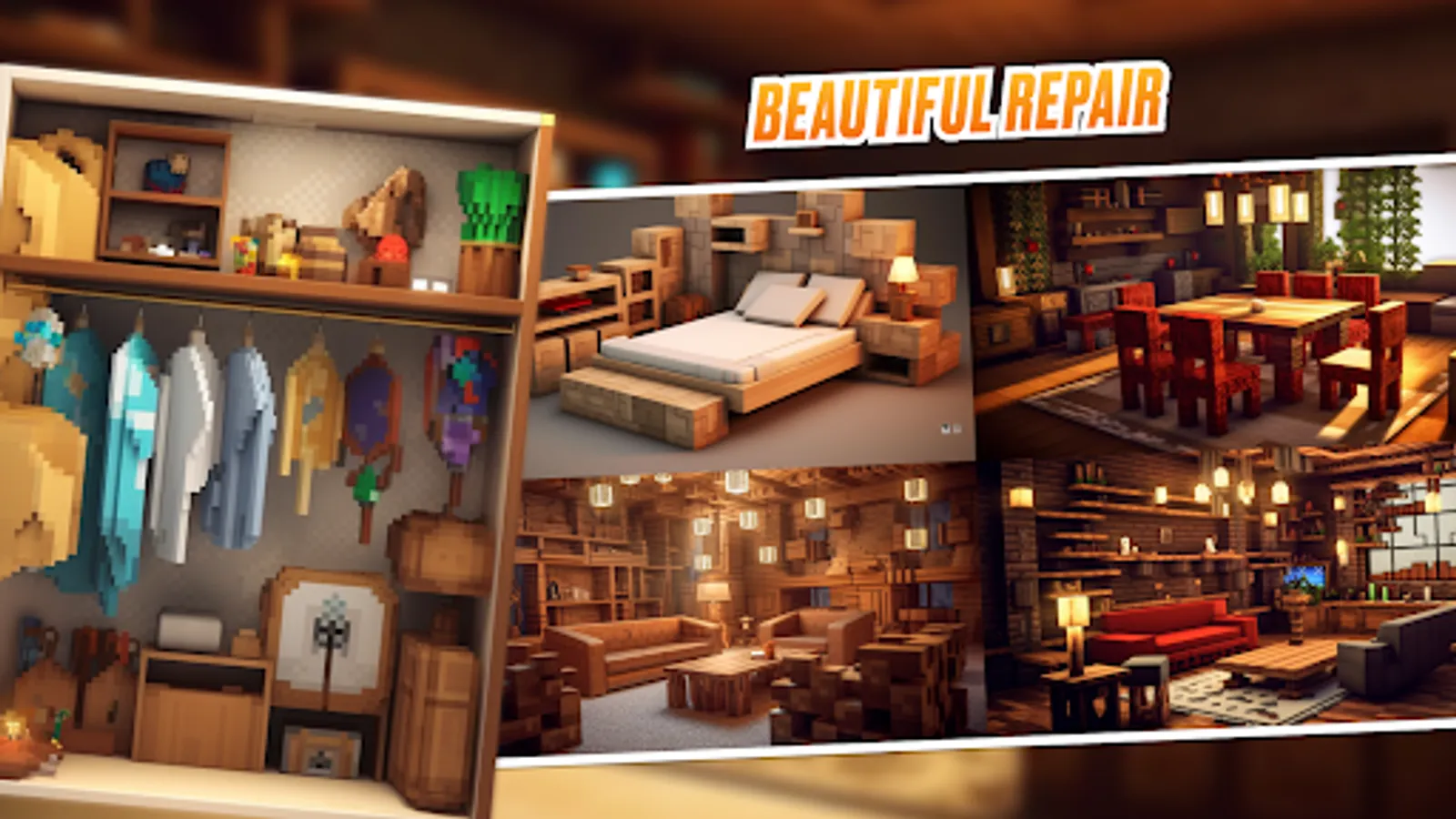 Developed by us app, which contains Real Furniture Mod MCPE, opens up additional horizons for creativity in MCPE Bedrock. The updated game offers a wide amp assortment that you can place inside your home. With this addon, you can create a comfortable and stylish space in Pocket Edition that reflects your personality and preferences.