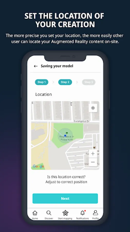 ● Set your location to help others enjoy your innovative virtual reality map