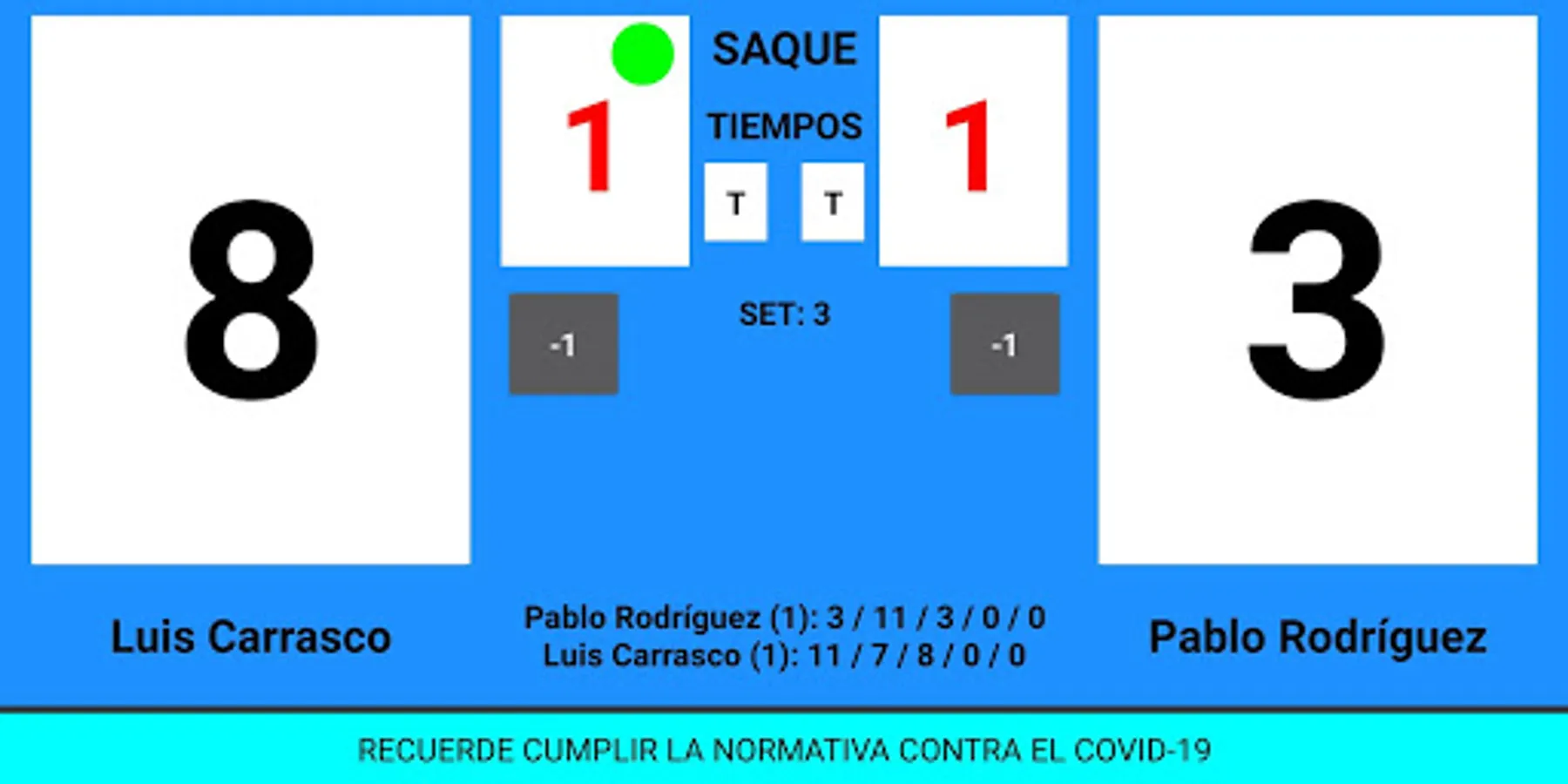 Small electronic scoreboard that allows umpiring table tennis matches. It has control of the points, sets, serve, dead times ...