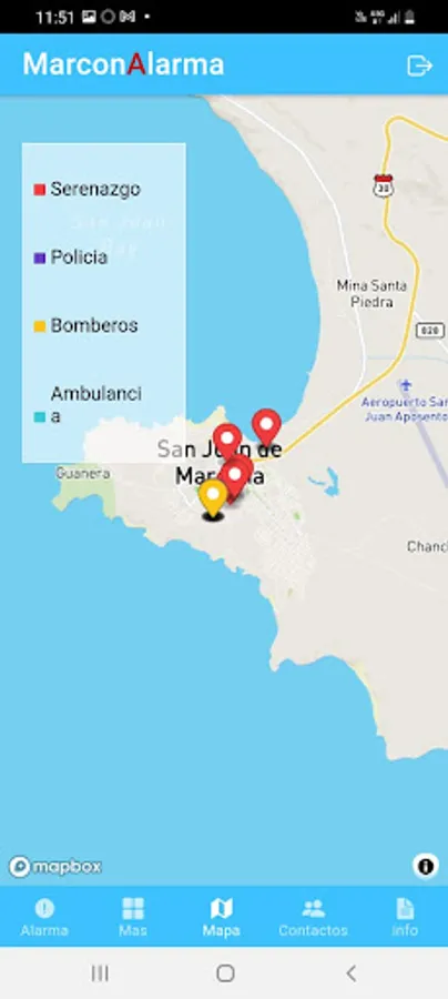 The user will also be able to see a map of Marcona according to the incidents reported by the application in a week, that is, for each user who uses the application, the others will be able to see where the area was. Another function is that it will be able to generate different types of alarm as the case may be, so that our authorities make contact as quickly as possible, save time and guarantee the safety of the population, be it the police, the fire brigade or the ambulance.