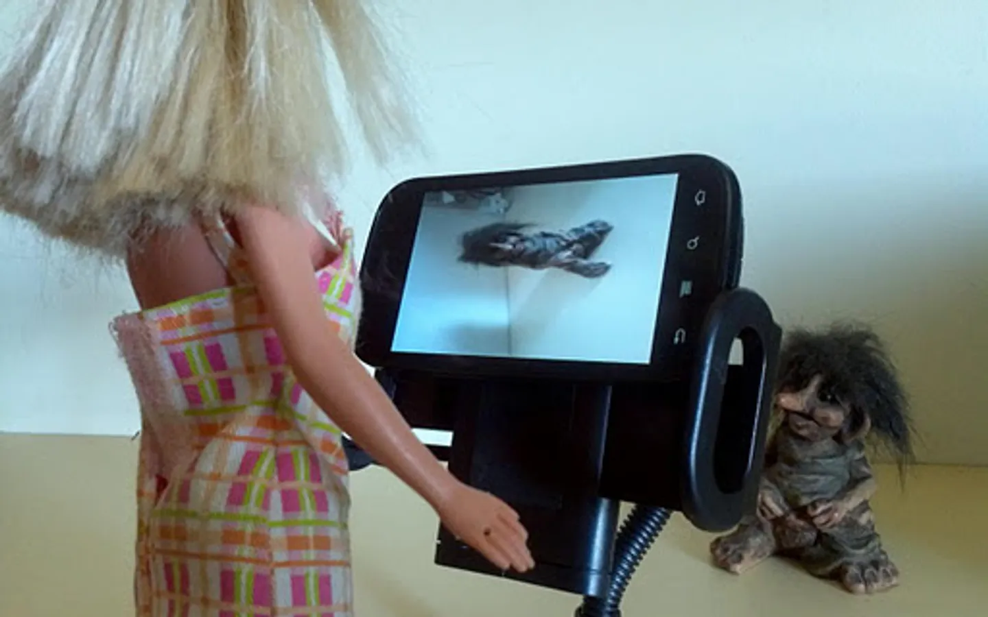 If he or she ever pushes any volume button, things will get even more interesting: the phone will take a photo made by the front camera, i.e. your friend's face trying to take the photo.