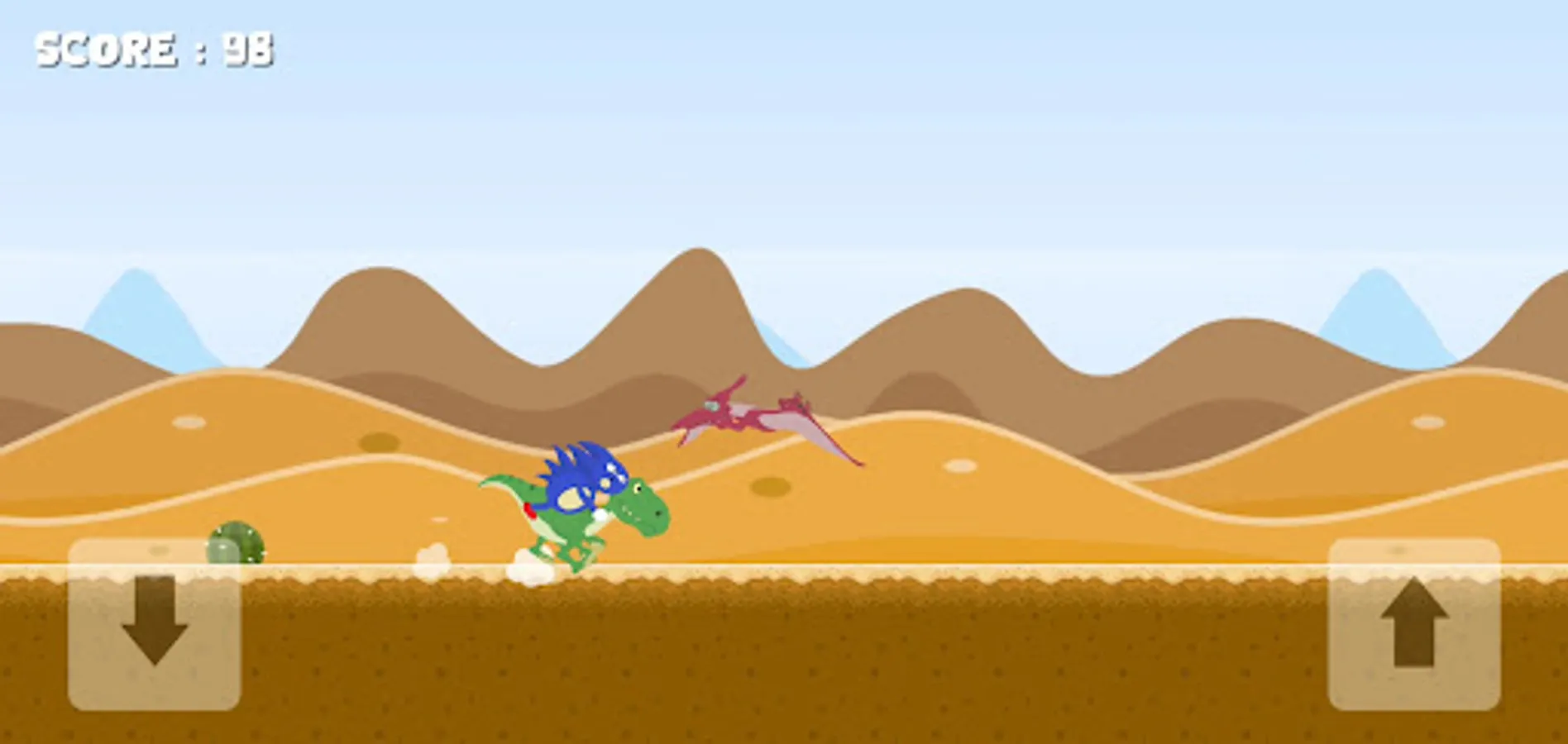 You are a dinosaur in a desert world, jump and crouch to avoid cactus, meteorites and other enemy dinosaurs, game speed will increase gradually.