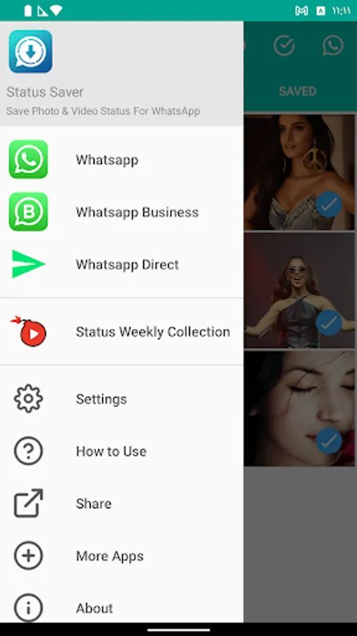 2- Switch to Status Saver and select the ones you want to save
