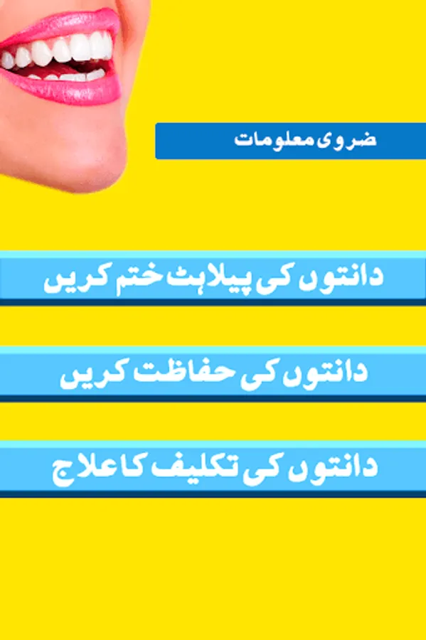 Apny danto ko bakadgi se saaf karna chiyee ager ap k daanto per pelhat hei or ap un ko saaf hein karna chaty hein to is app mein ap k lye bohat sare totky hein jin ki madad se ap apny daant safeed motimo ki tarha chamka sakty hein.
