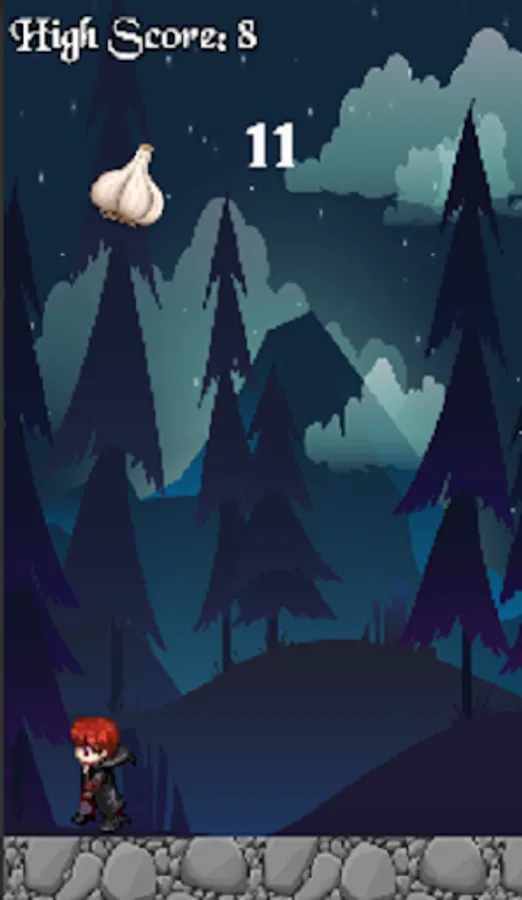 Dracula was going out for the walk and out of nowhere rain of garlic starts falling down on him. He is trying to find a way back home but it doesn't look good for him. Try to beat your score in this dodging game test your agility in this arcade game! I hope you gonna enjoy the game!