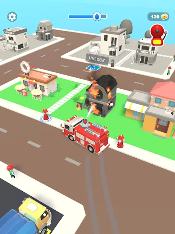 Create your own fire station to protect your city from fires. You can quickly respond to fires by expanding your firefighter team. You can also take a fire truck to the fire station and respond to fires even faster. It's up to you to save the people in the city from the fire. Hurry up...