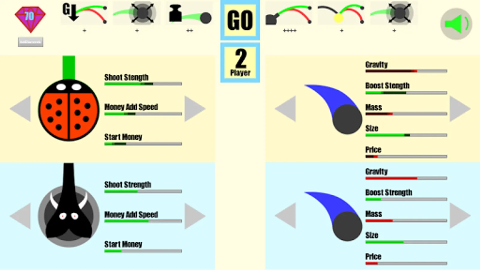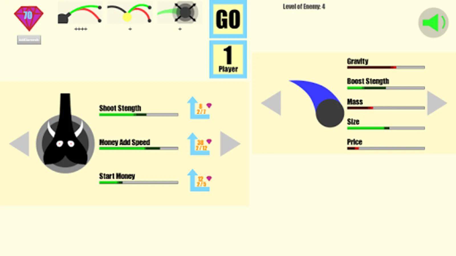 + Upgrade your player and bullets in the menu to become stronger and stronger!