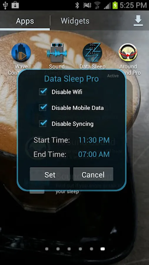With Data Sleep you set the start and end time and hit Set. That's it.