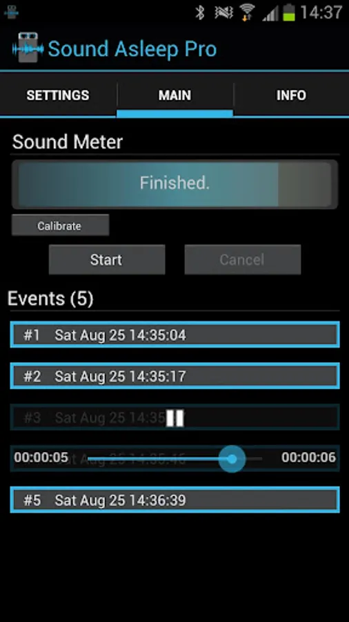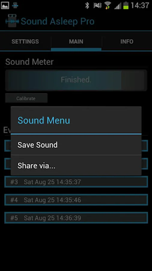 Listens while you sleep for loud noises such as snoring, sleep talking, dogs barking, doors closing, windows breaking, etc. Starts recording after the loud noise for a set time. # of events to record is adjustable. In the morning playback the sounds and find out what happened last night. Each event has its time logged down.