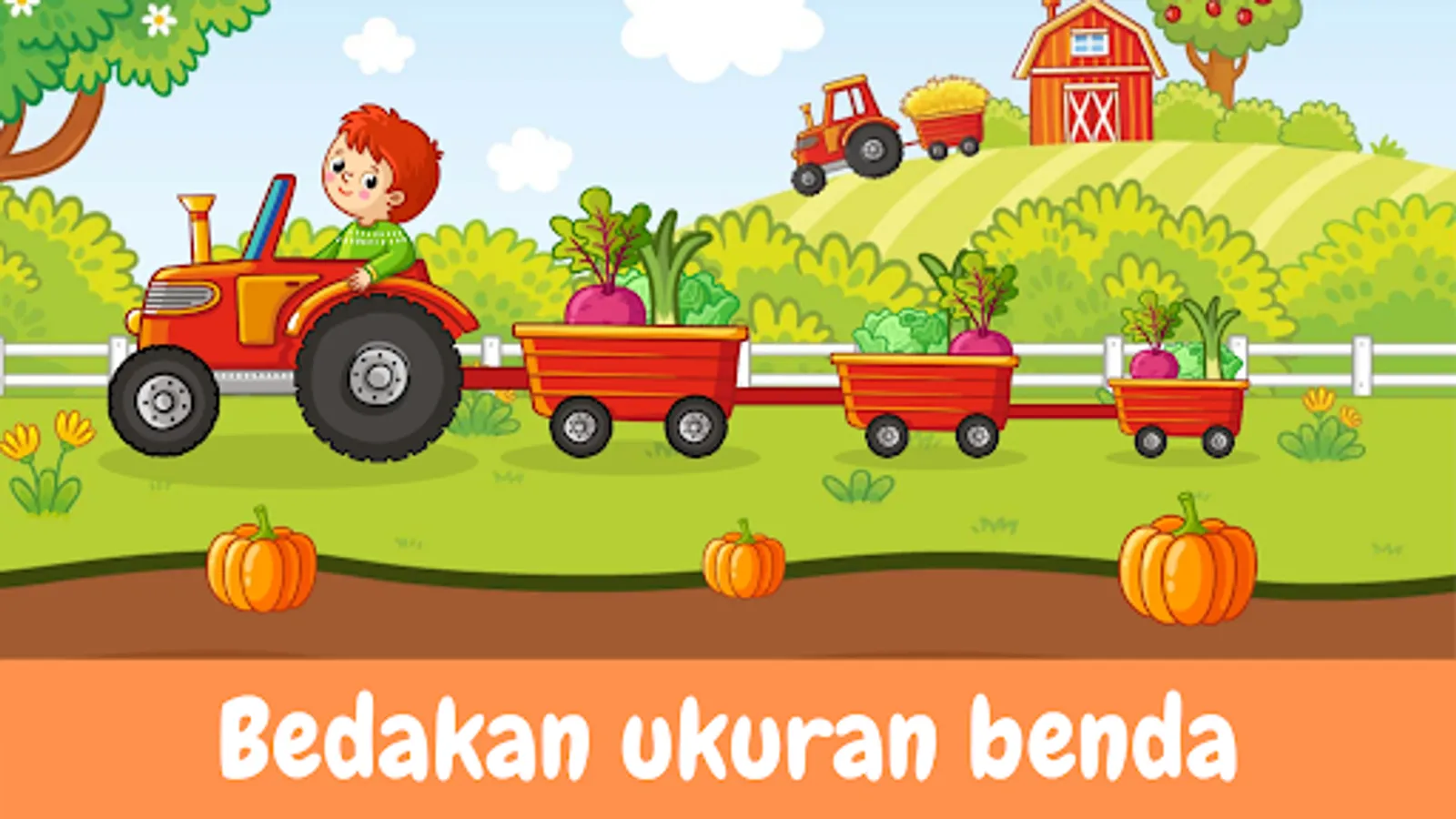 By playing this educational game, children will learn a lot about shapes and colors, develop motor skills, and recognize animal names and animal sounds. In the game, children will interact a lot by helping cute animal cartoon characters. They were also invited to help farmers harvest and classify crops based on type, size, and color of vegetables and fruits.