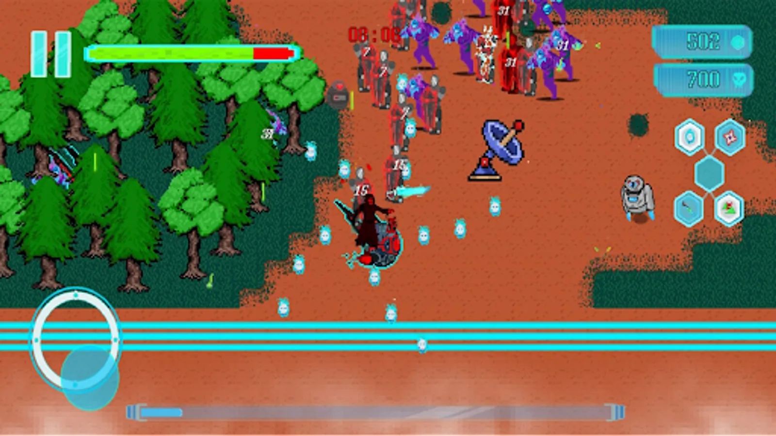 Try to survive in the depths of SPACE! Play with different variations. Survive 10 minutes againts enemies.