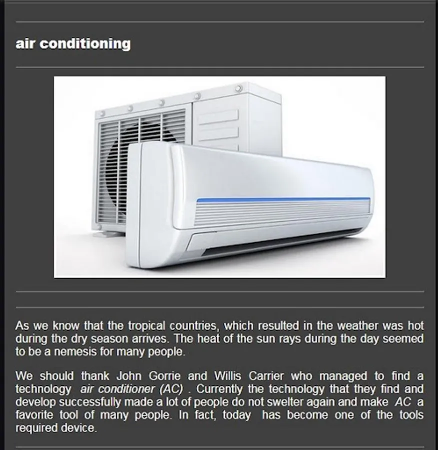 AC is a process of changing the nature of the air (especially temperature and humidity). and AC can refer to any form of cooling technology, heating, ventilation, or disinfection that modifies the condition udara.AC (often referred to as AC or air conditioning) is an appliance, system, or machine designed to change the temperature and humidity within an area (used for cooling and occasional heating depending on the air properties at a given time), typically using a refrigeration cycle but sometimes using evaporation, usually for comfort cooling in buildings and motor vehicles."