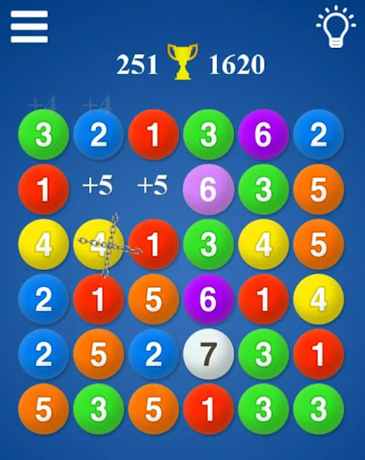 The basic rules are the same as in Match 3 games. However, if you match three or more balls of the same number, they will not all disappear, but will be composited into a higher number of balls.