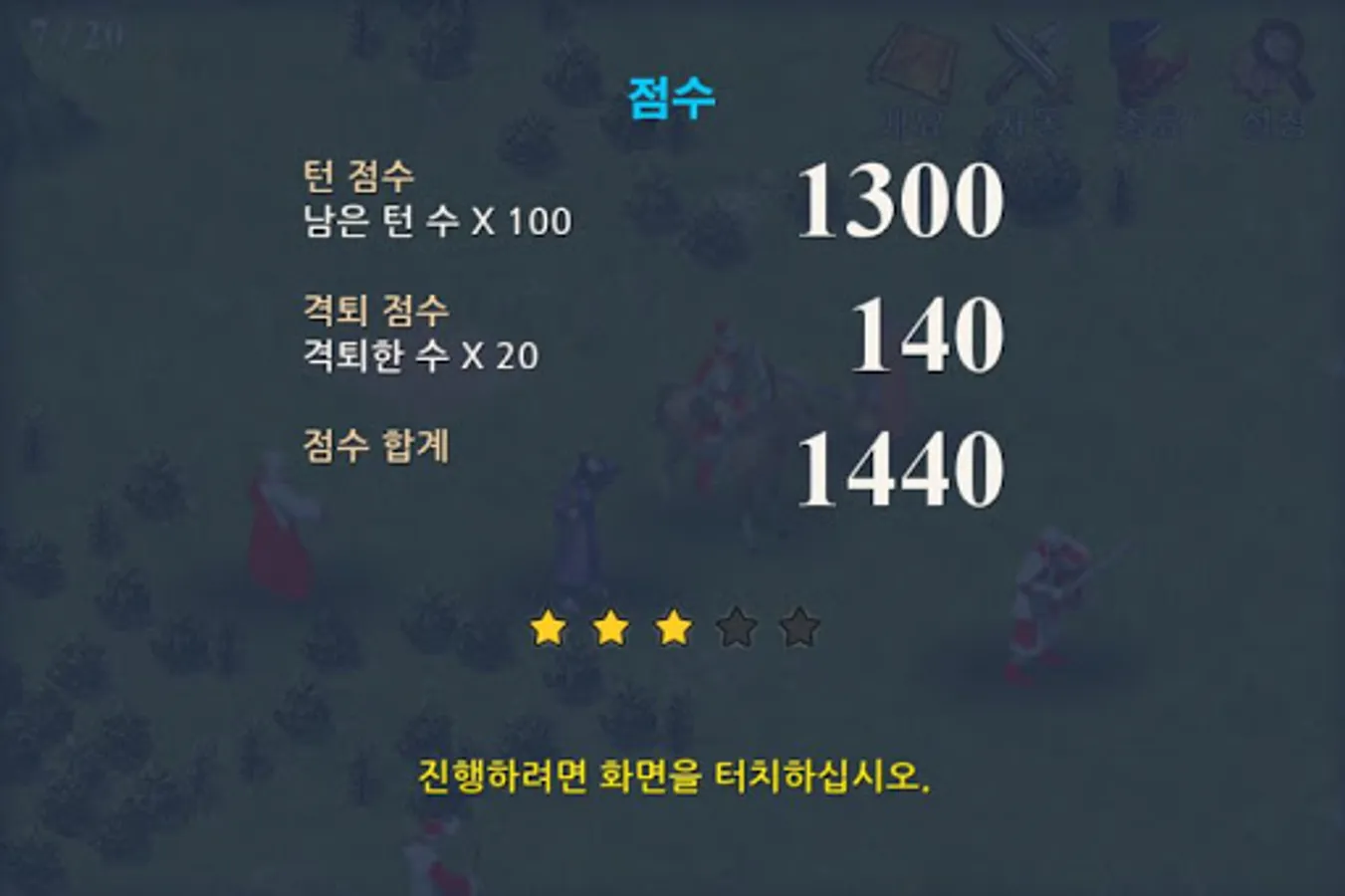 전투를 얼마나 잘 치렀는가에 따라 점수를 달리 얻게 되는데 보다 높은 점수를 얻기 위해서는 여러 가지 흥미롭고 전략적인 요소들을 고려하여 플레이해야 합니다.
