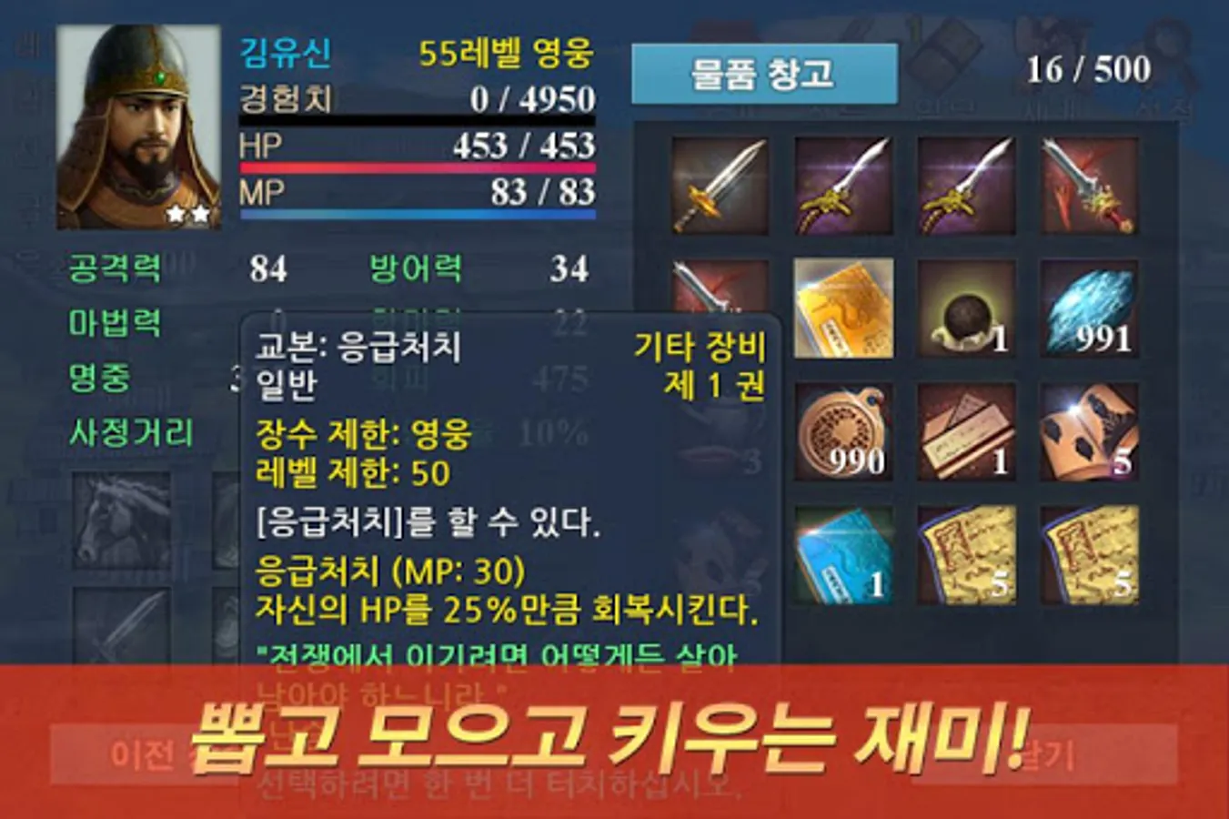 삼한 땅은 영험하여 예로부터 인물도 많고 진귀한 보물도 많습니다. 이들을 구하고 육성하고 조합하다 보면 당신도 어느새 삼한영웅전의 세계에 푹 빠지게 될 것입니다.