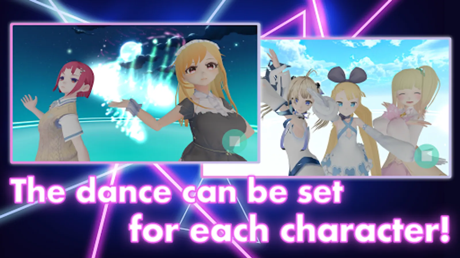 When you press the play button, cute characters such as Yandere and Vtubers (Miku will not appear) will dance and play music at the same time. When you press the play button, Yandere, Vtuber, and other cute characters will dance and the music will play at the same time.