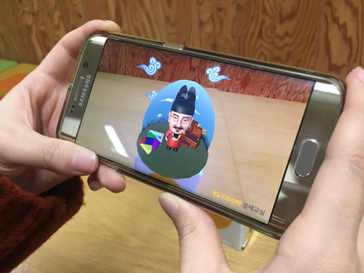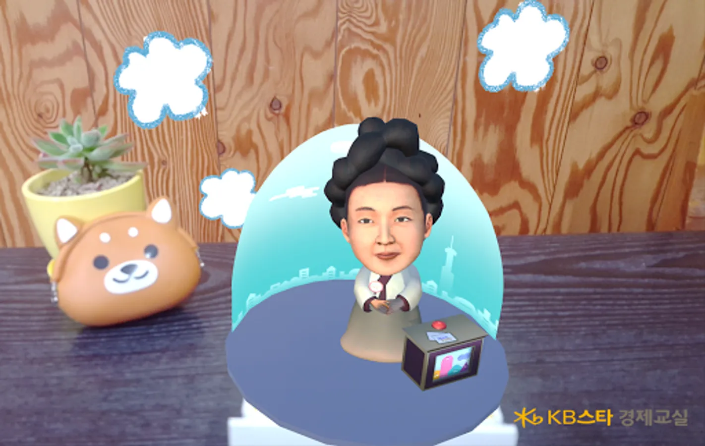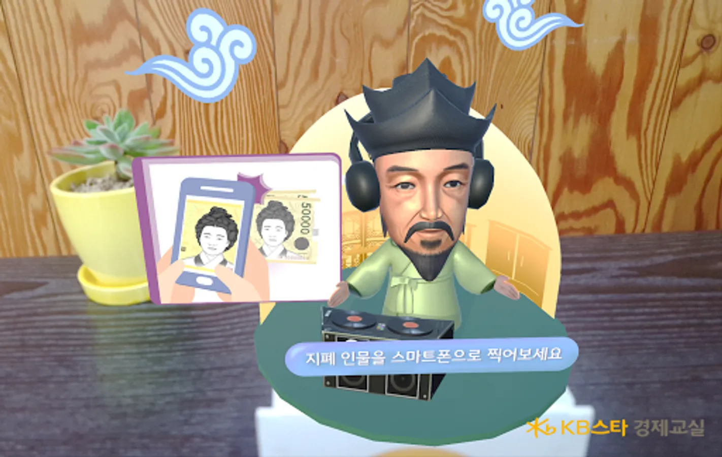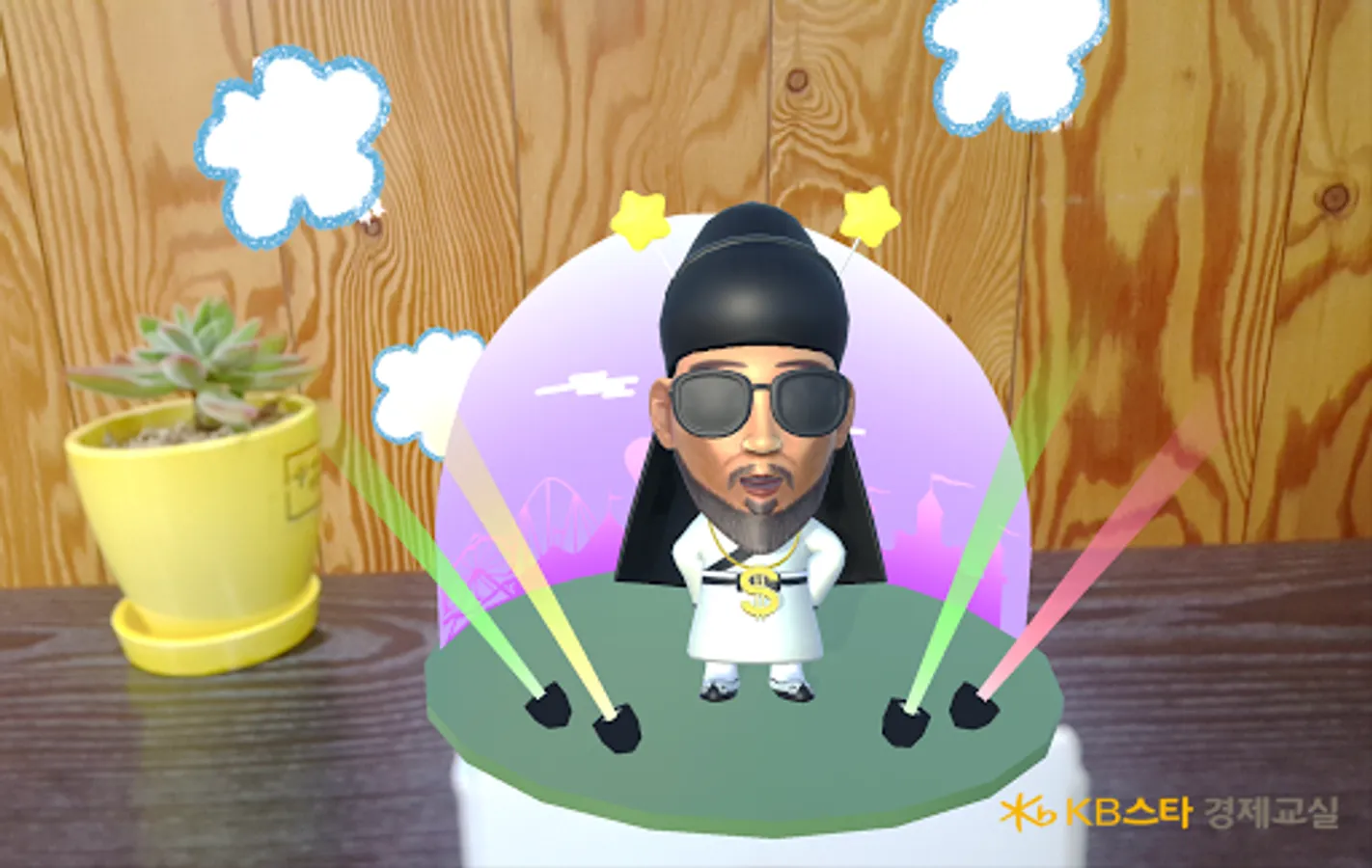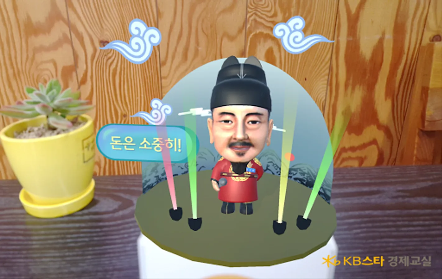An AR (augmented reality) produced by KB Kookmin Bank Economic Education applications using the technology. Try running a shine on mobile apps and meet the KB bank monetary figures or real money.
