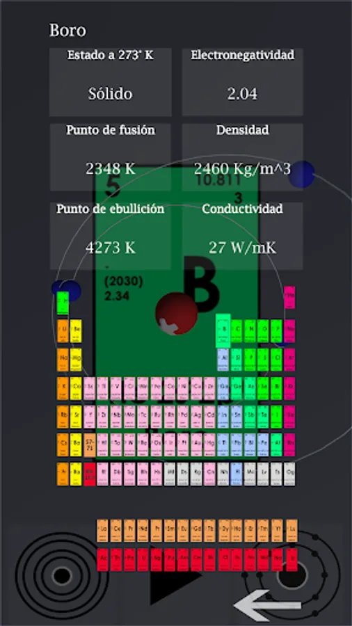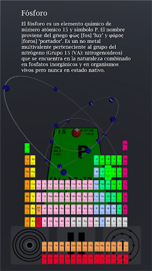 Atomic model application in a virtual environment that shows the corresponding model of each element, as well as the ability to discriminate by groups.