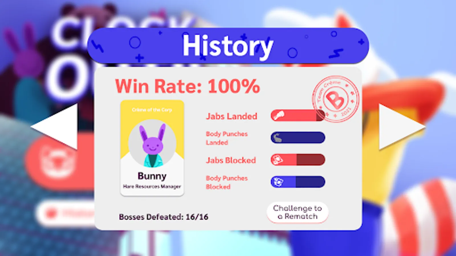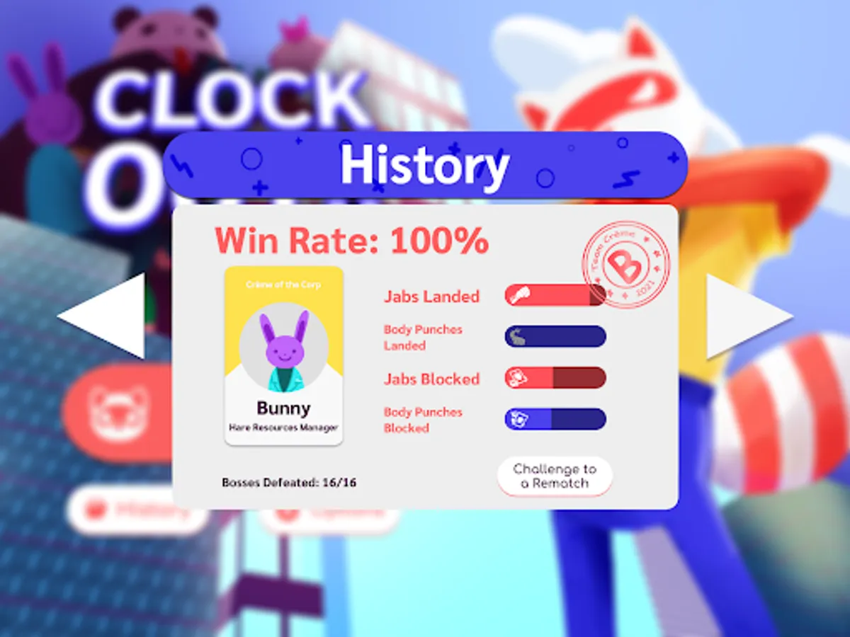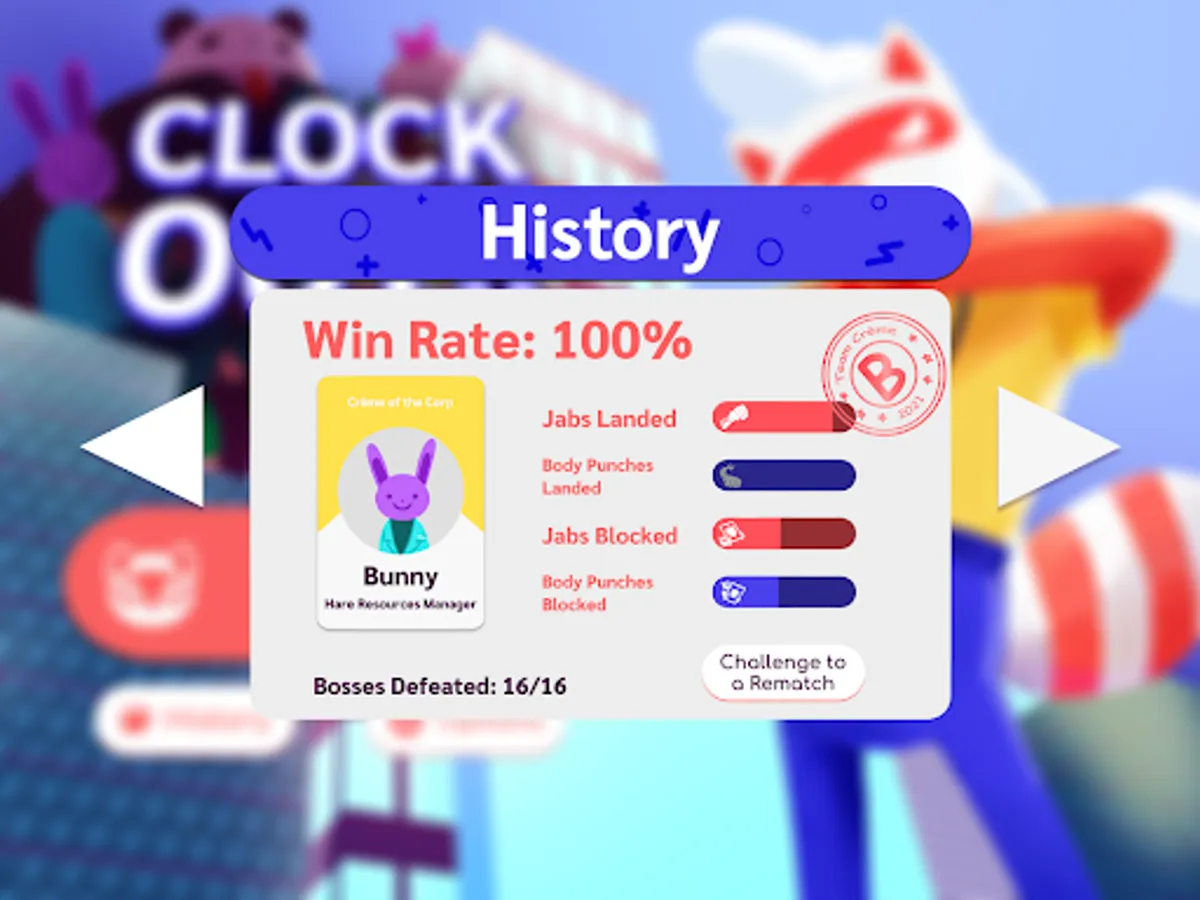 Fight bosses literally as an unpaid intern in Clock Out!!, an arcade-style fighting game. Wreck chaos, climb the corporate ladder, and fight the system!
