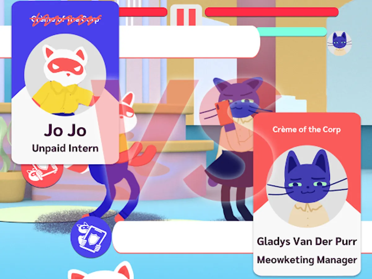 I am a furious unpaid creature taking out my vengeance on corporate. Very fun game! Feels like Punch-Out. Only gripe is that when the enemy gets frenzy the text on the screen can be a little distracting (looking at you Mr. Swimmons)